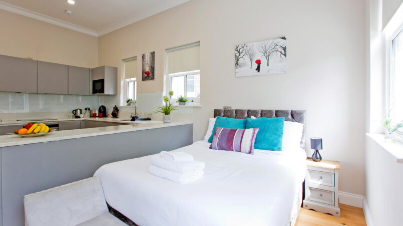 Superior and stylish 1 bed Studio Apartment in the Cromwell Road. A newly converted and equipped studio apartment, cosy and comfortable with underfloor heating and feature wooden floors. A perfect space for 1 or 2 people.