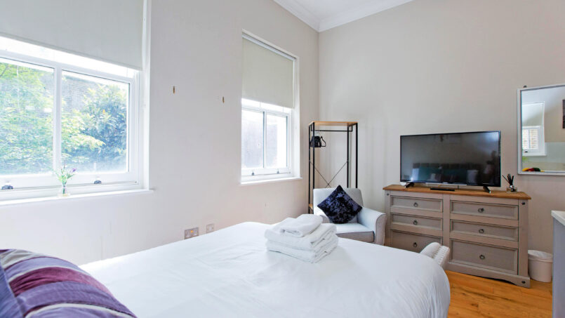 Free overnight parking is possible between 7 pm – 8 am in the Cromwell Road and spaces are usually available immediately outside the building. Parking is limited to 20 minutes between 8 am and 7 pm. Parking permits for on street parking are available from your host on request – these are charged at £25 per day. Commercial garage parking is available just across the road, also charged at £25 per day which is the prevailing rate in the area.
