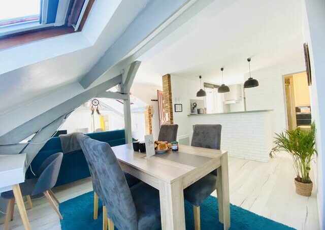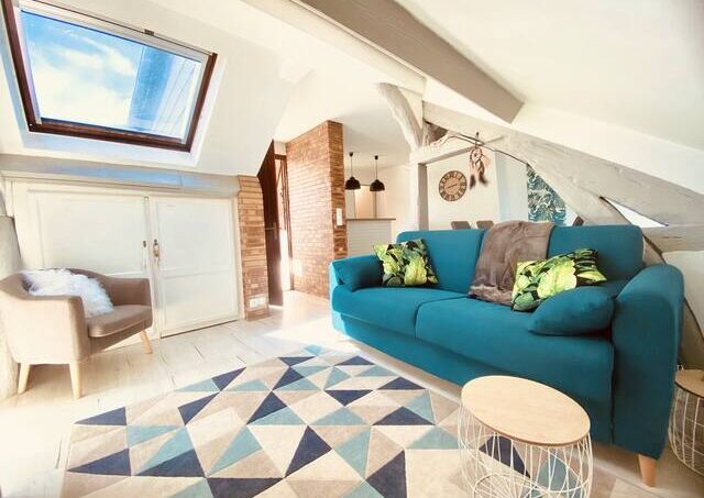 Under-roof apartment with exposed beams, lots of character and charm. You’re sure to fall in love.