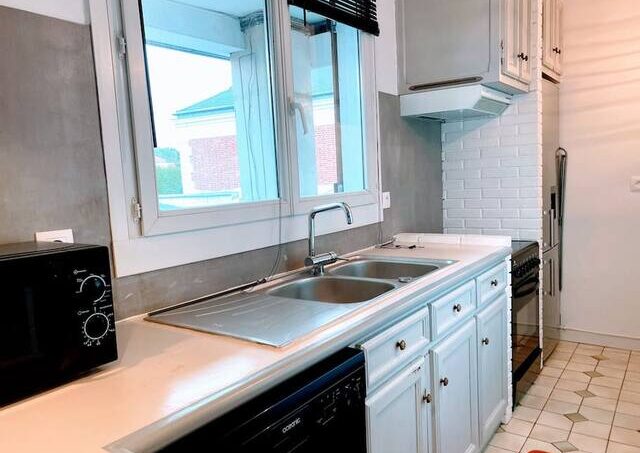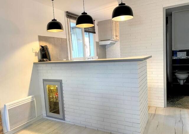 Located on the 2nd and top floor of a small residence in the center of Argenteuil, it comprises a large L-shaped room leading to a living room, an office area, a dining room and a fully-equipped open-plan kitchen.