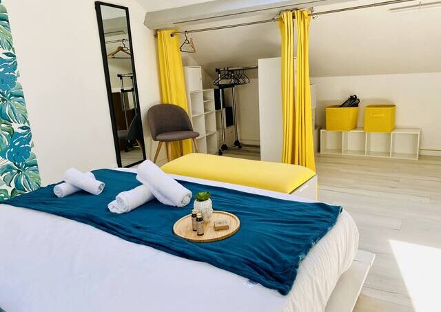 The kitchen is fully fitted and equipped with dishwasher (+ fridge-freezer, oven, hob, hood, microwave, coffee maker, kettle, dishwasher, kitchen utensils, cutlery, dishes, pots and pans…etc).