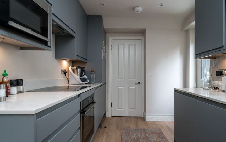 For the laundry fanatics, there is a washer-dryer in the kitchen tucked into a built-in cupboard in the kitchen plus a steam iron and ironing board are there for your use.