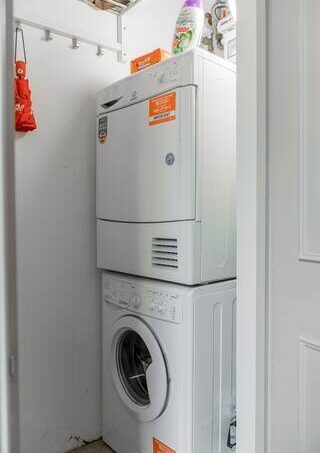 For the laundry fanatics, there is a washer plus a steam iron and ironing board are there for your use.
