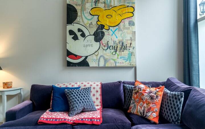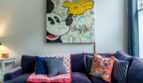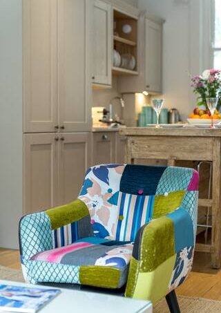Perfect for your stay in Central London! This is a newly renovated and furnished one-super king bedroom, one bathroom apartment of around 900 sq ft (84 sq m) in one of Kensington and Chelsea’s most beautiful and bustling areas. Once inside, this home is a perfect place for digital nomads, couples and small families. This home features a cosy living room with bursts of colour, an opulent well- equipped kitchen and spacious rooms filled with movie-themed artwork. Living room has a Scandinavian minimal movie theatre vibe. Relax on the sofa, hang out with your friends, make yourself at home! It’s a welcoming and inviting space where you can kick back. The bedroom is perfect for a great night’ sleep. The dining room table has a desk for studying or working from home. The patio area is furnished with BBQ and stylish, hanging chair, eclectic living area providing a homely, fun space for family time (seating for up to 8).