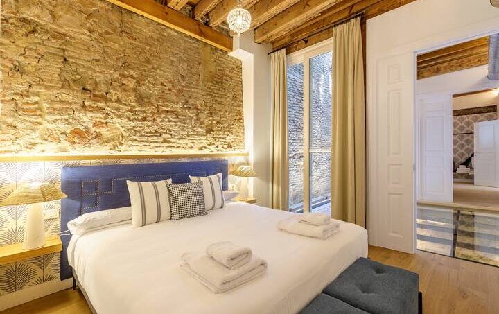 This stately Andalusian palace with a discreet façade has 14 apartments and a large central patio adorned by Renaissance columns and is the result of delicate restoration and enhancement work.