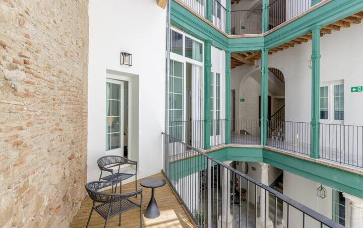 This stately Andalusian palace with a discreet façade has 14 apartments and a large central patio adorned by Renaissance columns and is the result of delicate restoration and enhancement work. Every corner reflects the commitment of the best and finest local artisans, creating a unique atmosphere that evokes a flourishing era of our history and modern comfort.