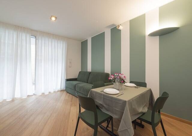 Elegant one-bedroom apartment located in a residential, semi-central area, connected to the main university centers. The dynamic area offers a wide range of gyms and leisure places. The apartment, renovated with refinement, welcomes with bright living area; the open kitchen is complete with a dining table and a comfortable sofa bed, access to the balcony. The spacious room, furnished with a comfortable double bed, has a large closet, complete with a nice bathroom equipped with a large shower
