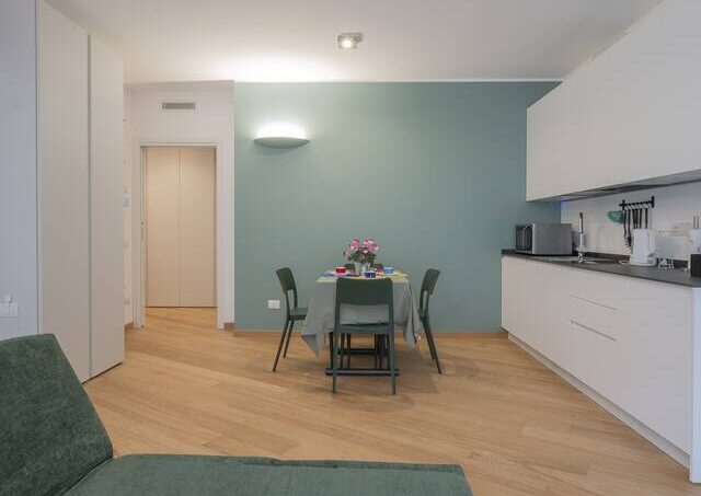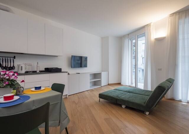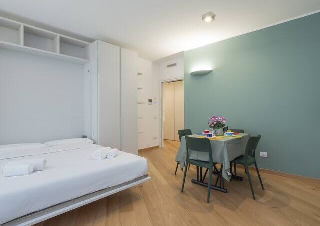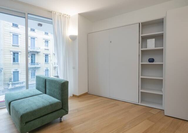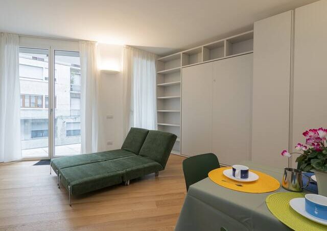 Elegant studio, Susa area, a short distance from the subway. The apartment is newly built. The open kitchen with dining table is enriched by a vanishing double bed, optimizing the space and ensuring versatility in the use of the rooms, balcony. The bathroom, cute and functional, is equipped with a spacious shower, ensuring comfort and convenience. The presence of a home automation system gives the apartment a touch of modernity