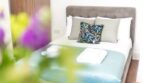 This modern and stylish studio apartment offers plenty of space and light. The open-plan space has a compact kitchen area, fully equipped with kettle, toaster, and fridge, compact dining area and bedroom. The bathroom is neat and has a standing shower, toilet and basin.