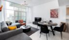 Kick back in the living space with a cozy L-shaped sofa – ideal for movie nights on the 55-inch TV with balcony access for a stunning view. Hungry? Glide over to the open kitchen, fully loaded with a fridge, gas stove, oven, microwave, toaster, electric kettle, and for coffee aficionados, a Nespresso machine! Settle down at the dining table for your meals. Laundry day? No sweat! There’s a washing machine right in the unit.