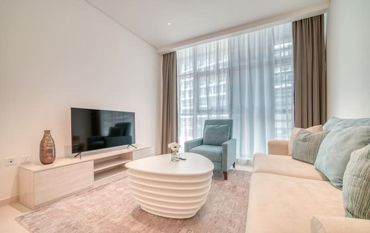 At Seven Palm, you’re in for a treat. You have complete access to the entire space, from the snug bedroom to the welcoming living room and a kitchen ready for your culinary adventures. But wait, there’s more – here’s the cherry on top: cool off with a refreshing swim in the pool or get your endorphins flowing in the gym. We’ve taken care of your relaxation and fitness needs. Plus, just to make things even sweeter, parking is complimentary, so no need to worry about that! And to add the cherry on top, have your SPF ready because the West Beach is just a few steps away. So, kick off your shoes, get comfortable, and let your Dubai adventure unfold in absolute style!