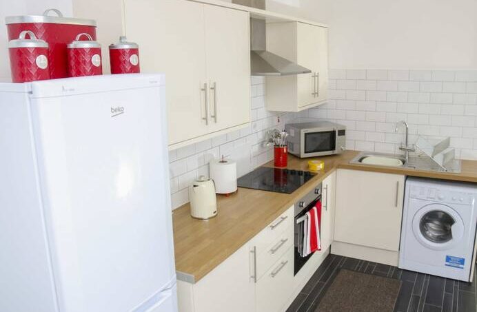 You’ll enjoy your stay here in our beautifully furnished 3-bedroom apartment. Located on the ground floor, the apartment is modern, clean and comfortable. Spacious 3 double bedrooms that can sleep up to 8, with one en-suite room. The apartment enjoys a large open planned kitchen and living area suitable for meetings and/or hosting dinners.