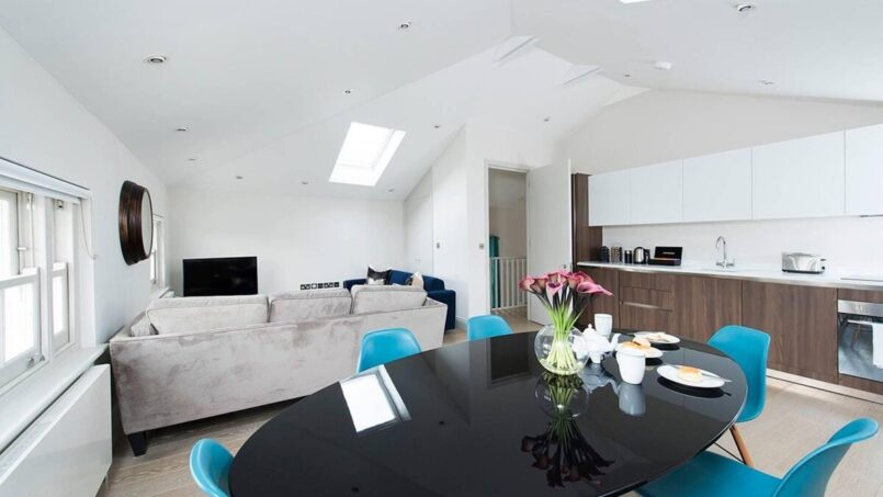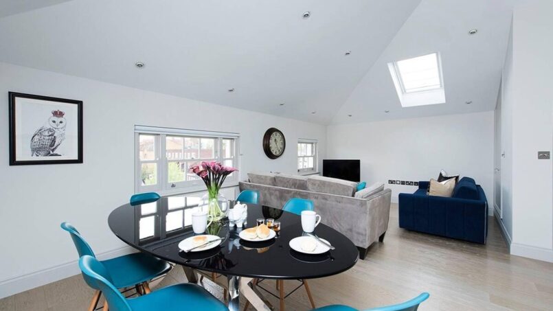 This modern flat is located in the beautiful borough of Hammersmith. The flat is close to fantastic transport links, Westfield Shopping centre, restaurants and open green spaces. The flat has one bedroom with a comfortable super king size bed, one bathroom and a lovely open plan living, kitchen and dining area. This would be the perfect flat for up to four people looking for a luxurious place to stay, which is just a stone’s throw away from Central London.