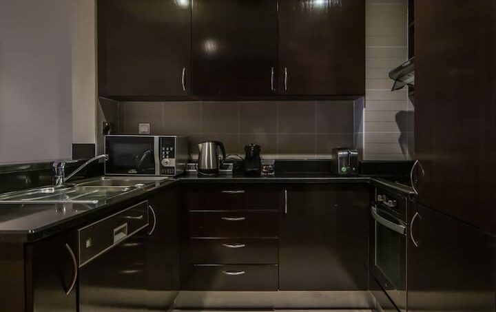 – Fully equipped kitchen (including coffee machine, teapot, toaster, microwave, stove, oven, cutlery, and kitchenware)