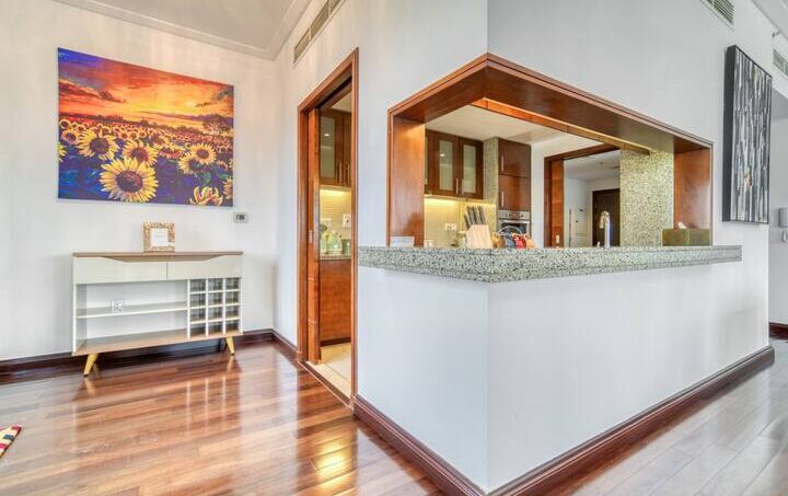 A mere five minutes from commercial hubs like Dubai International Financial Centre and Business Bay, ten minutes from Dubai International Airport. For lazy days on the beach, a taxi will take you to the Persian Gulf in 5 minutes, or for thirsty travelers, how about heading to Dubai Creek for a dhow dinner cruise. When you’re ready to explore the city further, you can take the Dubai Metro or RTA taxi Uber and other car services are also available and widely used throughout the Emirate.