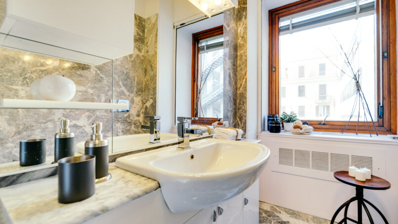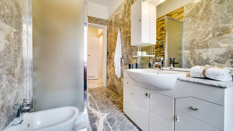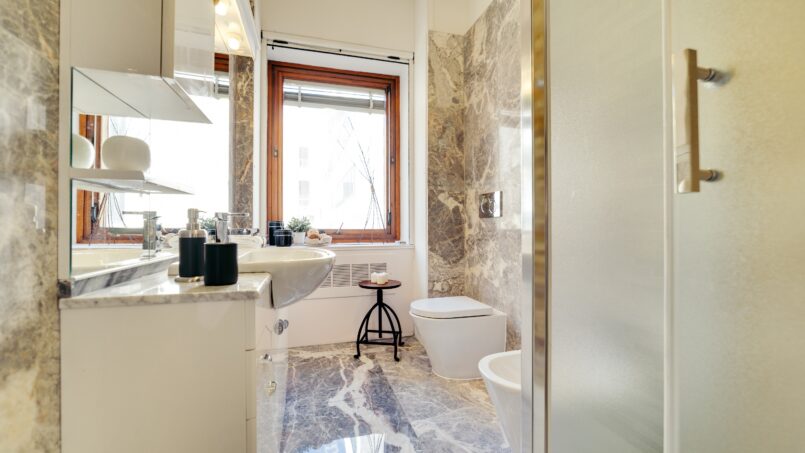 One of the strengths is finally the bathroom, entirely in Carrara marble, all new with a great shower always available!