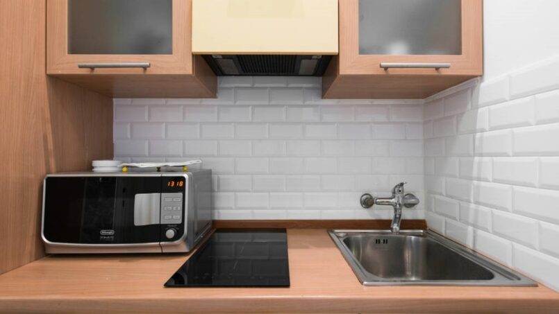 There is a kitchenette, small but complete with everything you need.