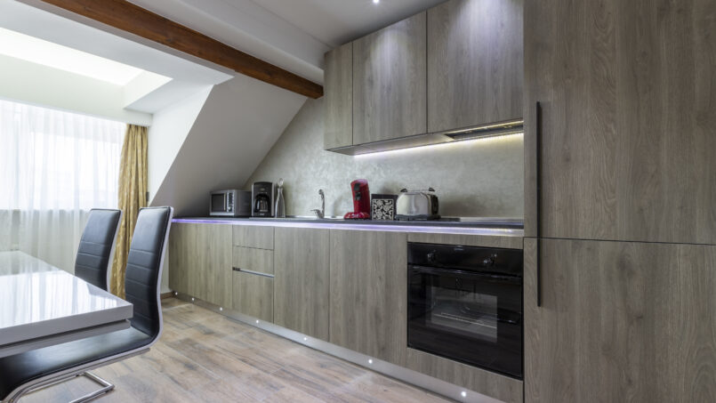 The apartment is equipped with a new fully equipped kitchen with washer dryer, dishwasher.