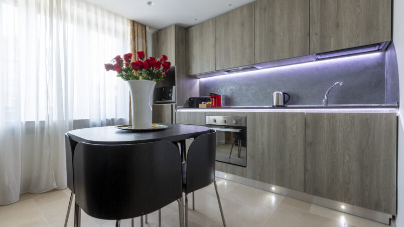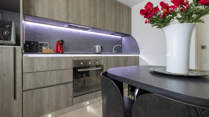 The apartment is equipped with a new fully equipped kitchen with washer dryer, dishwasher.