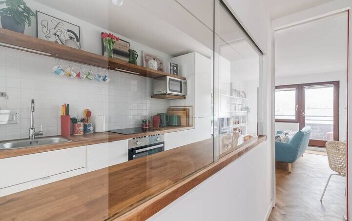 The living room is equipped with a comfortable sofa, a dining table and a Smart TV. The kitchen is fully equipped with modern appliances and includes all the cooking utensils that you could need when preparing a quick snack or your evening dinner. The bedroom is equipped with a king-size bed with a bathroom equipped with a bathtub with an overhead shower