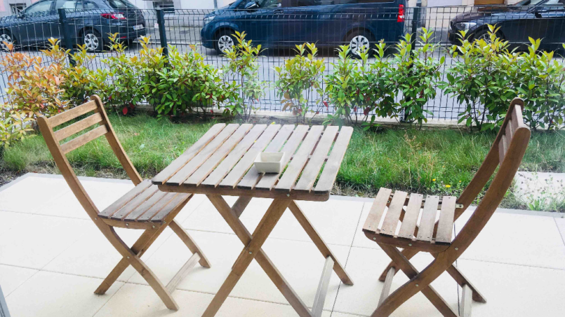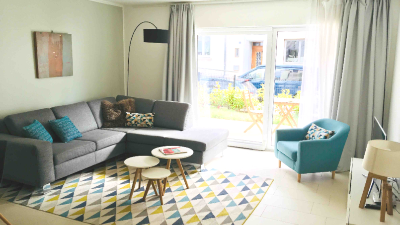 5 min walk to the tram and 50meter from all grocery stores, restaurants, and 100 meter from a playground.