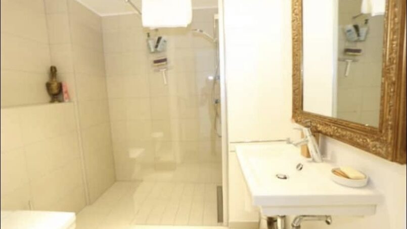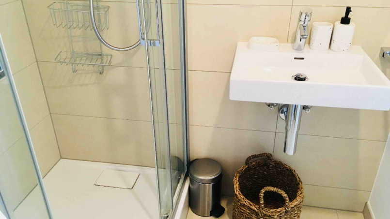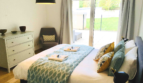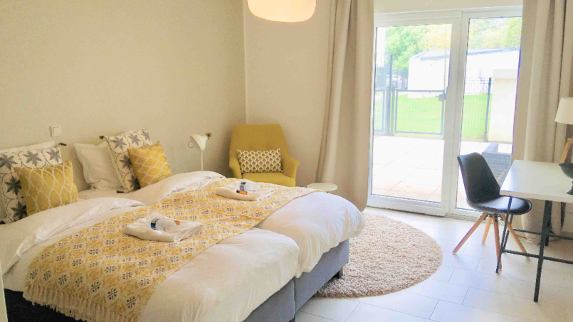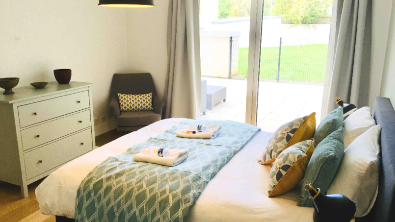 The 2 bedrooms have each a very comfortable double bed, a wardrobe, a bedside table and lamp. 1 bedroom has working area with a desk and chair.