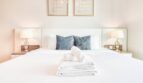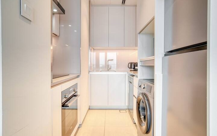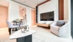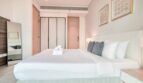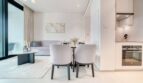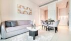 This posh apartment is an ideal choice, whether you’re here for leisure or business. The floor-to-ceiling balcony window floods the space with natural light, creating a welcoming atmosphere. Relax on the comfortable sofa next to a convenient center table – a perfect spot for binge-watching on the 55-inch TV. If you fancy preparing a meal, the open kitchen is fully equipped with an electric stove, oven, fridge, microwave, toaster, electric kettle, and even a Nespresso machine for coffee enthusiasts. Gather with your family and friends around the modern dining table that seats four. Plus, you won’t have to worry about cleaning, as the apartment includes a dishwasher and a washing machine for your laundry needs.