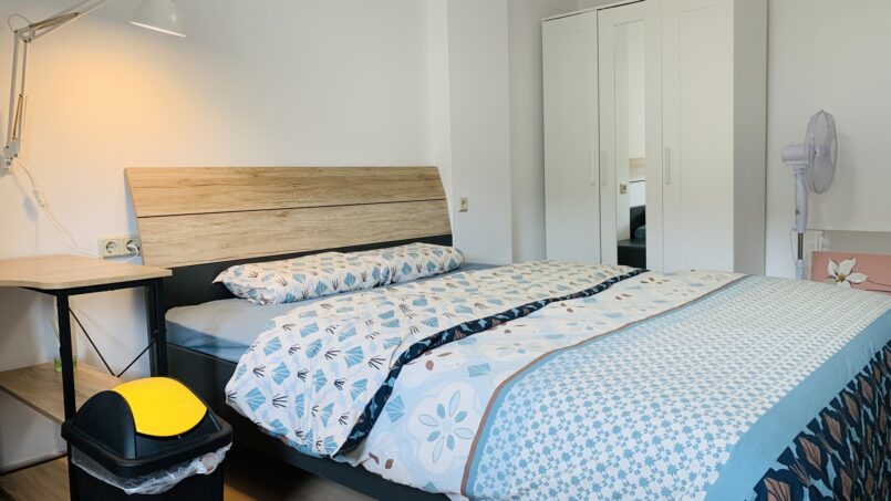 There are 4 bedrooms with 2 shared bathrooms and two big bedrooms with private bathrooms. the bedrooms are all fully furnished as in the pictures and the house has 2 open kitchen rooms on the zero floor and the first floor. we have a big basement, and storage spaces inside, and we have public street parking spaces nearby the building.