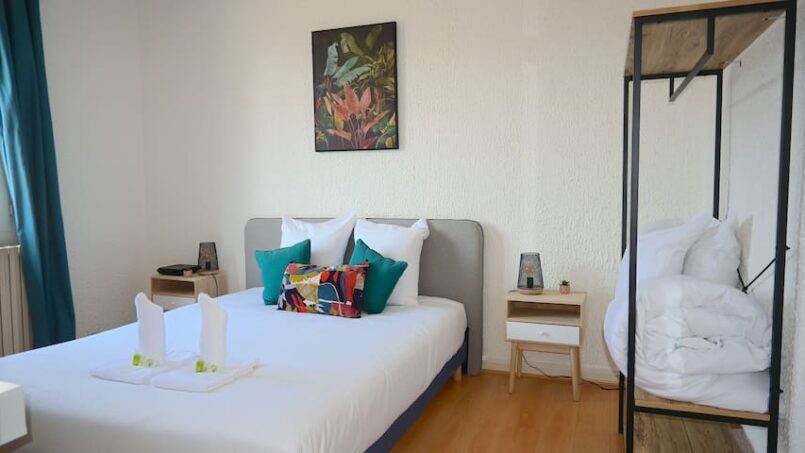 2-room apartment, which can accommodate up to 4 travelers, 1 double bed, 1 sofa bed, located on the 1st floor (a few steps in the building) and in a Scandinavian atmosphere!