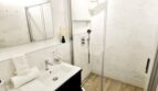 The apartment includes a bright living room, a fully equipped kitchen, and 1.5 modern bathrooms.