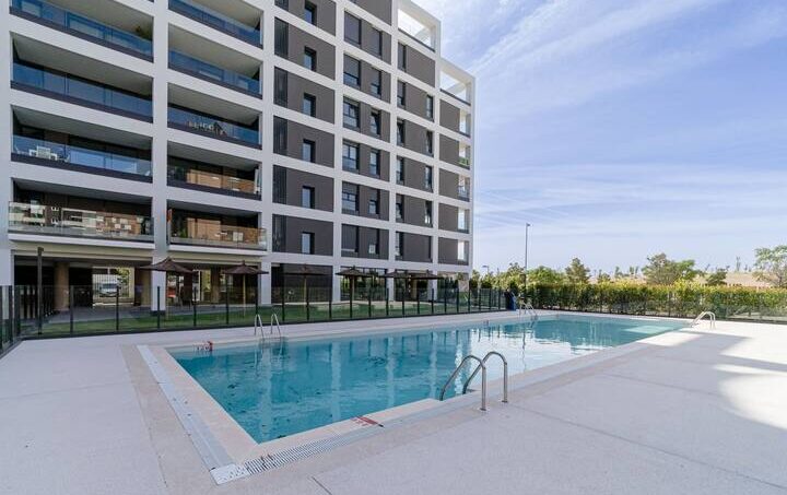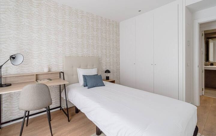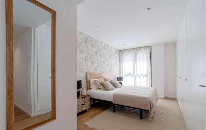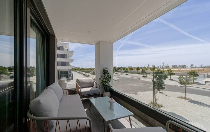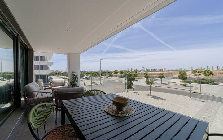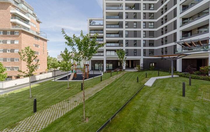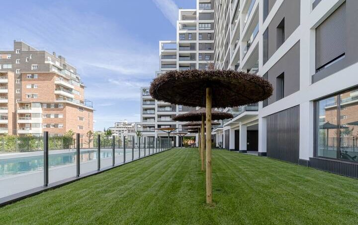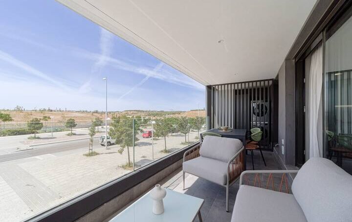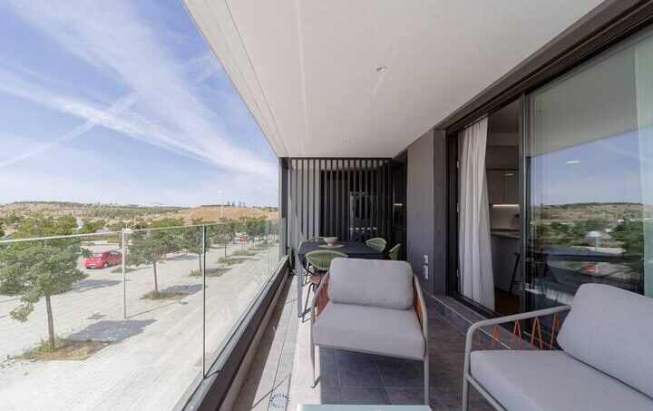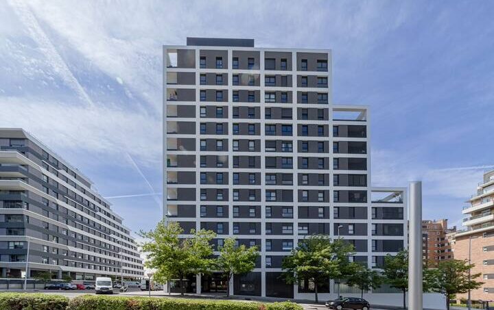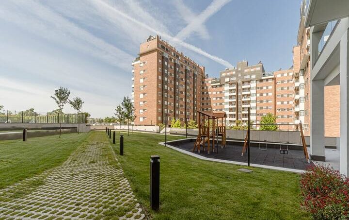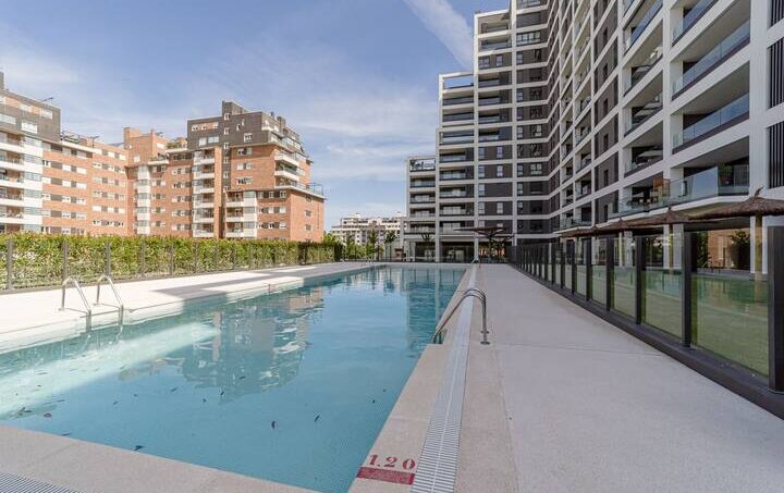 The apartment is located in a residential, exclusive and quiet area of Madrid, away from the hustle and bustle and surrounded by green areas, in a premium building of our portfolio. This apartment has all the amenities and is perfectly connected with the roads that connect you to the city center by car or Metro as it is close to Valdebebas station.