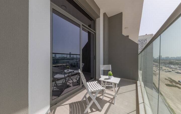 – Balcony with lounge area and city views