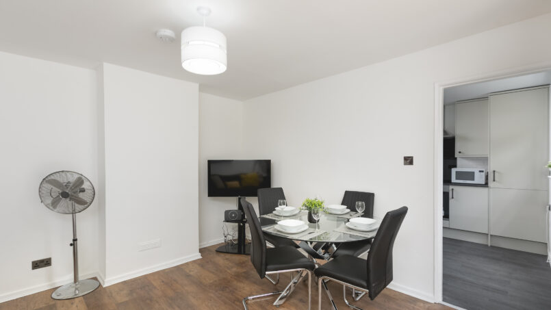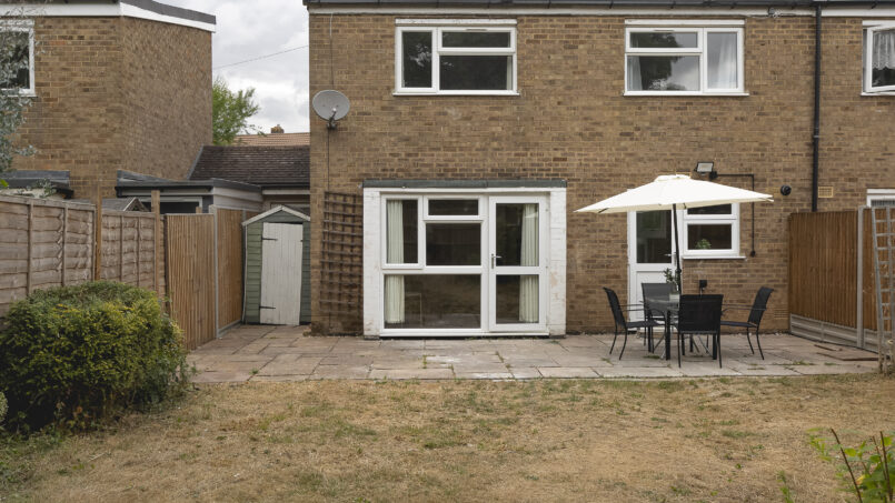 Free unallocated parking with limitless height and a rear garden that comes with table and chairs