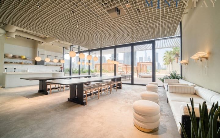 Beyond the stylish space, enjoy a range of amenities. Join the social kitchen for cooking classes, supper clubs, or recipe sharing – just a heads up, it’s a paid experience! Kick back in the “Hang-out” with pool, ping pong, or foosball – your vibe, your destress. Challenge friends or just lounge on our cozy poufs! Need a break? Hit the pool deck for a refreshing breather between meetings. It’s a top-notch 5-star spot to soak up some sun and sip your juice, with stunning Dubai architectural views in tow. For the active souls, the gym’s got you covered. Whether you prefer a relaxed or intense workout, we have the gear and space for all personalities, moods, and fitness levels.