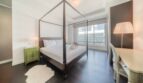It offers a serene ambiance with large windows that let in natural light during the day and offer stunning views of the outdoors. With ample storage, the room becomes an ideal choice for long-term stays. The wardrobe provides enough space to neatly organize your clothes and keep your space clutter-free, ensuring a restful escape from the world.