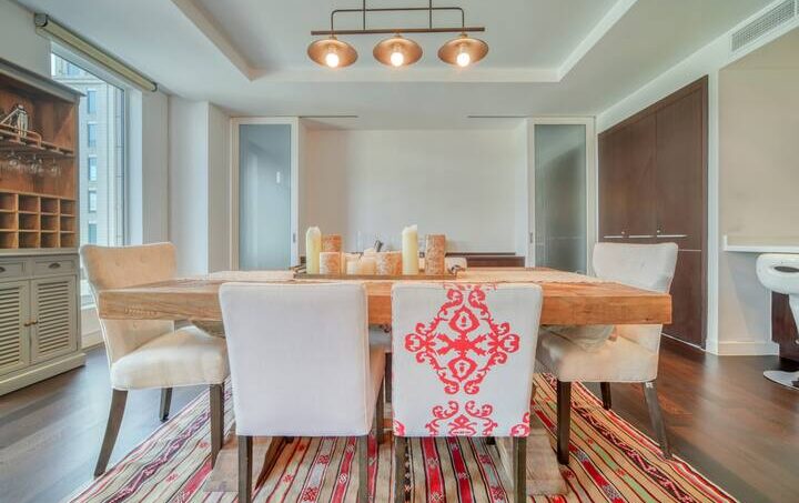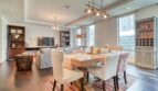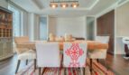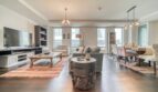The dining area features a modern table and chairs, ideal for sharing meals with family and friends. The kitchen is fully equipped with high-end appliances, allowing you to easily whip up your favorite meals at any time.