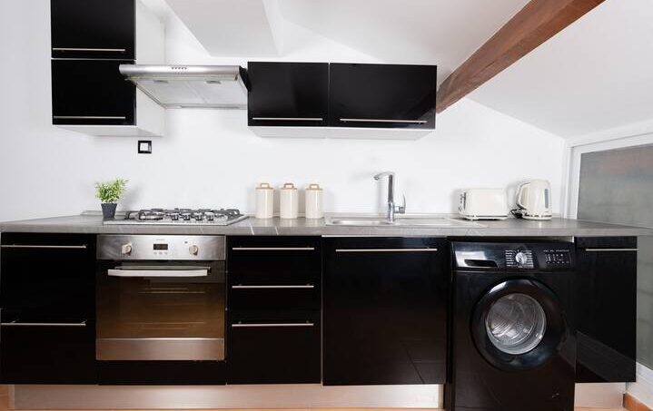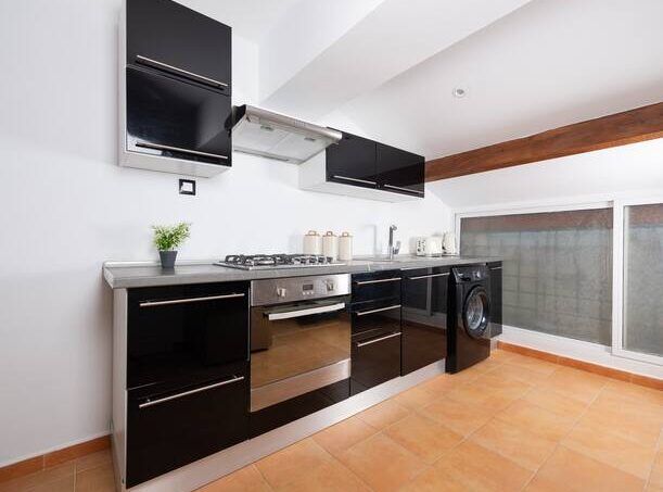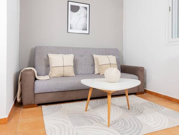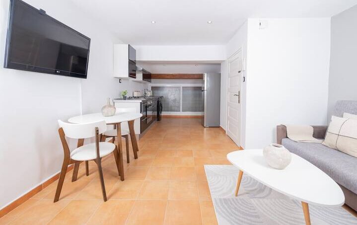 L’appartement comprend un grand séjour, une cuisine entièrement équipée (four, micro-ondes, réfrigérateur, lave-linge, ustensiles, etc.) et est fabuleusement meublé. Le Wi-fi est installé avec une télévision.