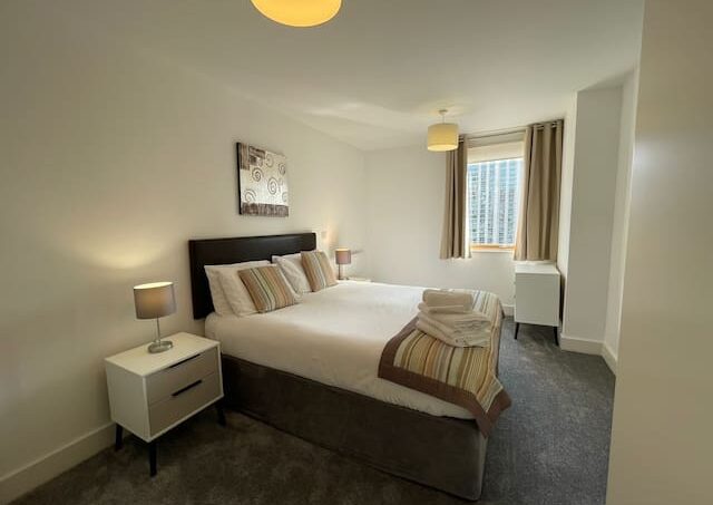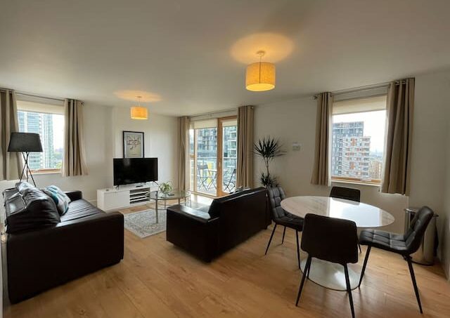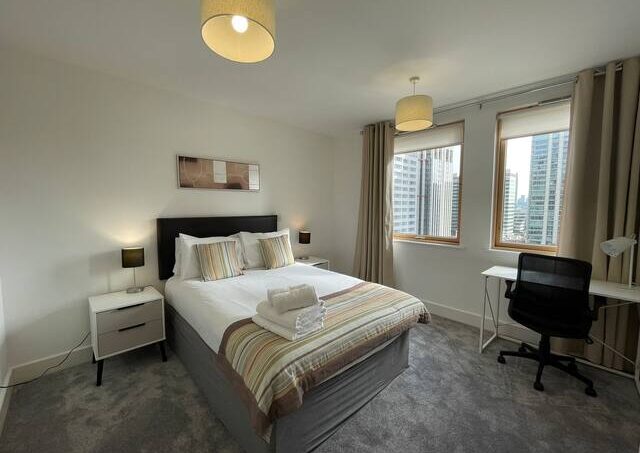 A very comfortable and roomy 2 bedroom serviced apartment located in the popular South Quay neighbourhood in Canary Wharf.