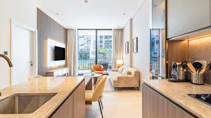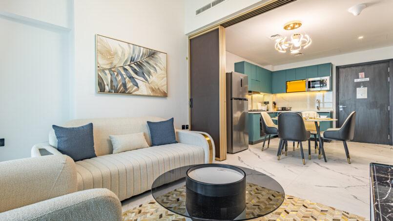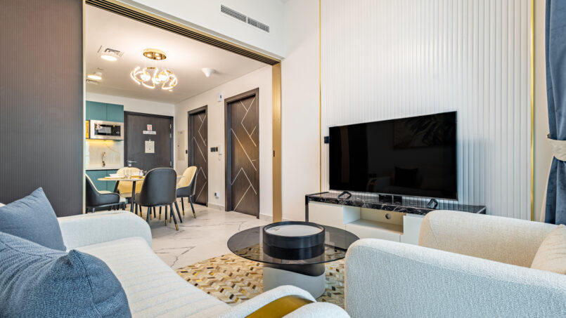 Experience comfort and convenience in this modern studio apartment located in Beverly Boulevard, one of Arjan’s most vibrant and newly developed communities. Ideal for solo travelers, couples, or digital nomads, this fully furnished short-term rental in Dubai offers hotel-style amenities in a relaxed, residential setting.