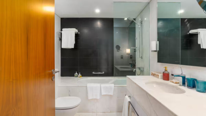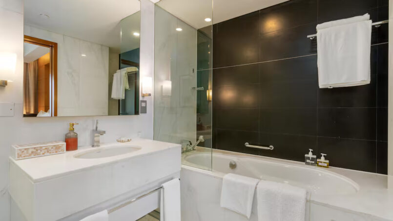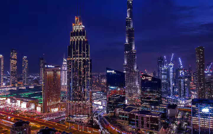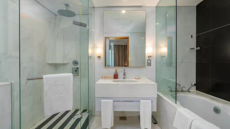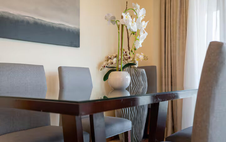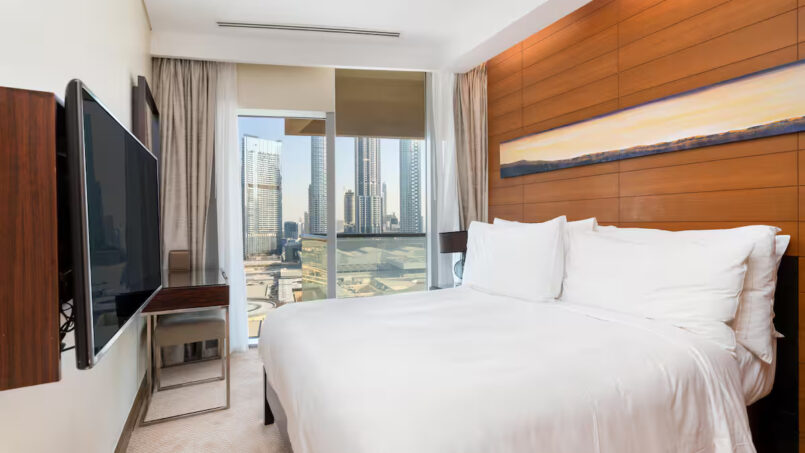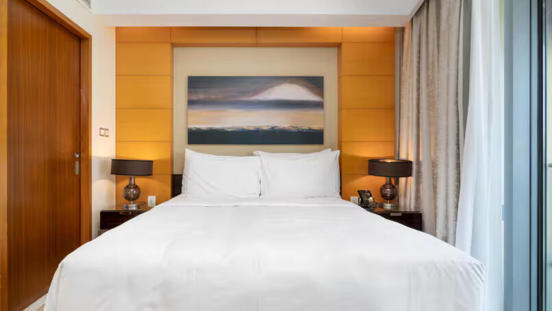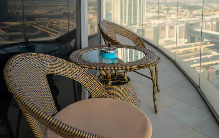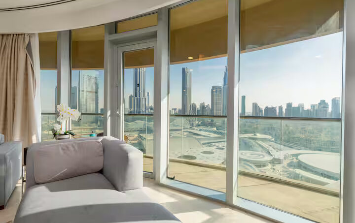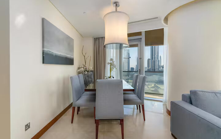 This high-end Dubai apartment has two bedrooms and a balcony with a view of the city. The Address Dubai Mall provides its guests with a variety of first-rate facilities, including a fitness center, a games room, and an incredible infinity pool.