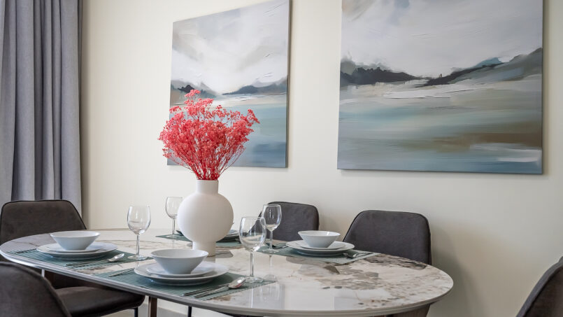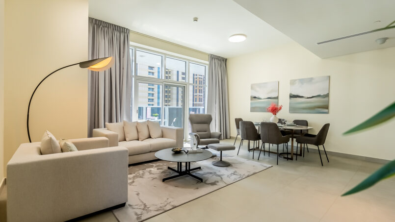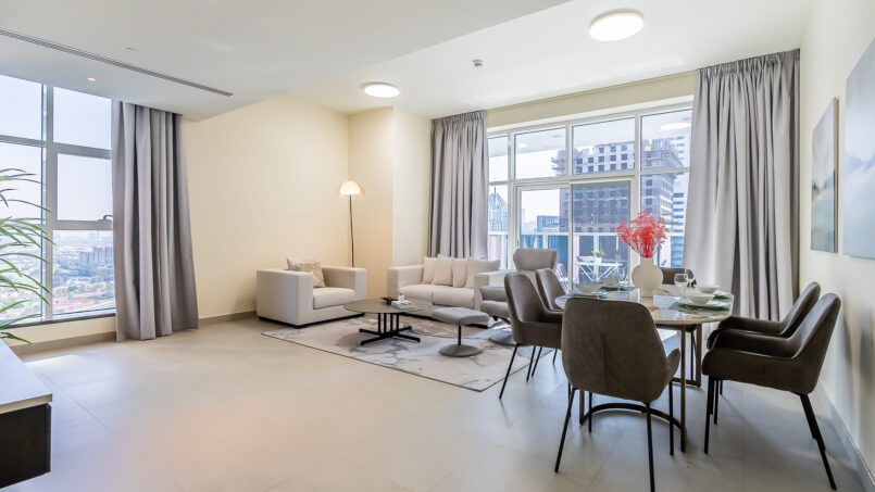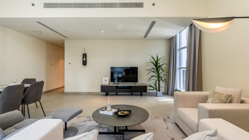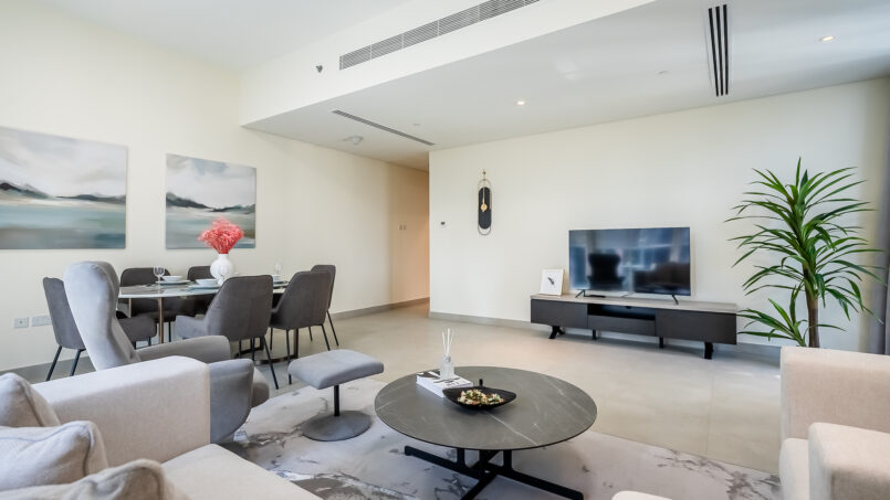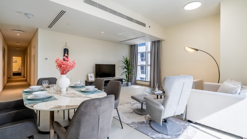 Guests will feel at home in this multi-functional 2-bedroom apartment by having everything needed for a comfortable stay. There is floor to ceiling windows which opens towards beautiful Dubai Marina views. The bedrooms are thoughtfully designed with high quality furniture and bed settings.