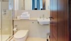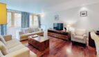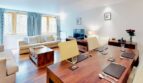 The kitchen features a dishwasher, American fridge/freezer, induction hob, espresso coffee machine and waste disposal unit, as well as a microwave and conventional oven. There is an informal dining area in the kitchen in addition to the dining table in the living room. A smart TV and bluetooth speakers in the living room and TVs in each of the bedrooms provide the entertainment. A separate laundry room in the apartment contains a washing machine and tumble dryer.
