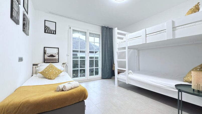The house features 4 bedrooms: 3 with double beds, 4 single beds, and 1 double sofa bed, providing plenty of sleeping arrangements for groups or families.