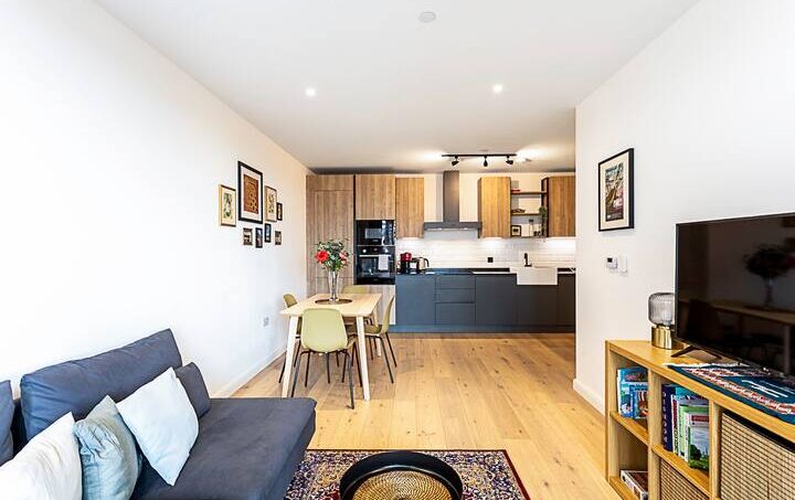 This two-bedroom apartment with a view of the Shard is situated in the idyllic area of Hackney Wick, just 150 meters from Hackney WIck Overground Station, making it the perfect location for your stay in London.