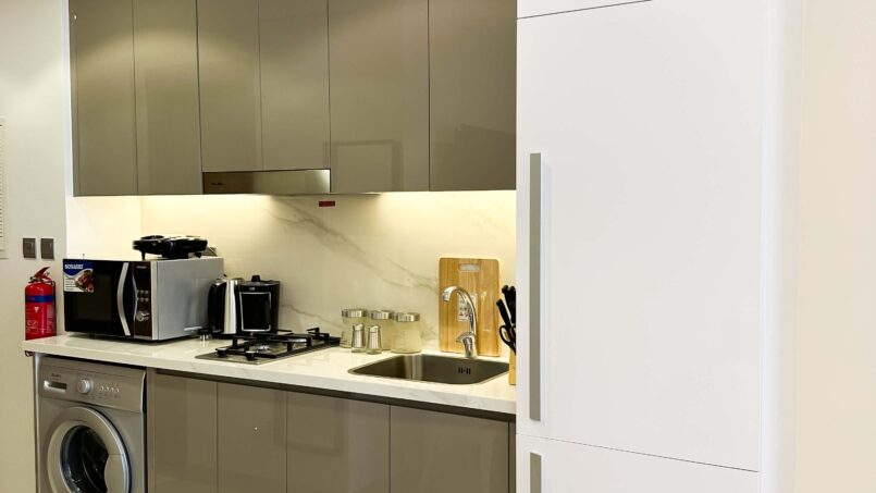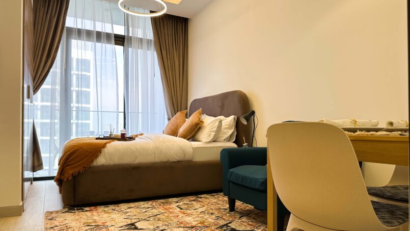 Enter your generously sized and elegantly decorated vacation sanctuary. Whether you’re a fan of horse racing or eagerly anticipate Meydan Racecourse events, choosing this holiday residence in Meydan situates you in close proximity to this internationally renowned venue.