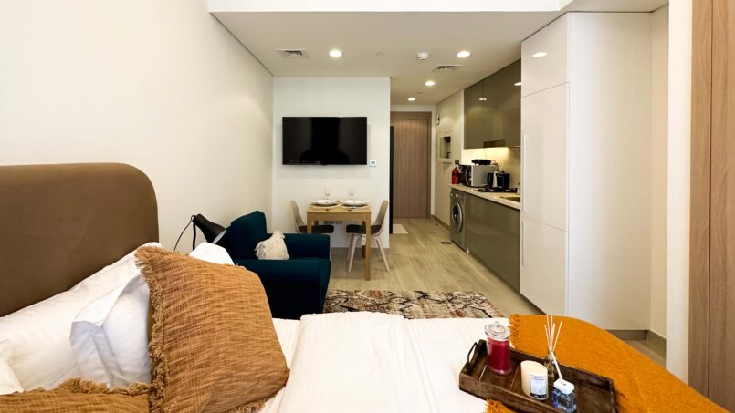 Dash Stays is delighted to present this modern fully furnished Studio Apartment situated in Azizi Riviera 9, Meydan.