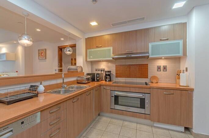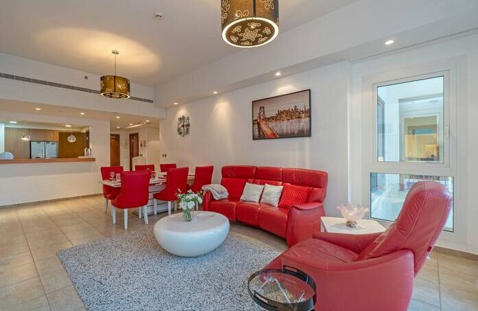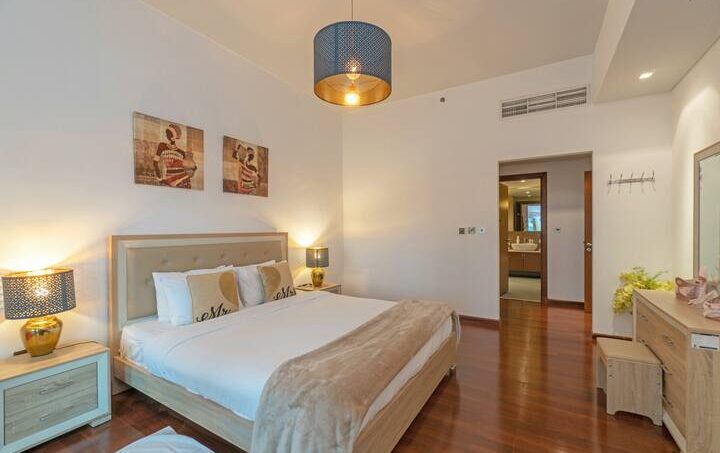 This immaculate furnished 2 bedroom Apartment Hosted by Our property, is one of the buildings located in the Palm, Jumeirah worlds largest man-made island. The island features beachfront properties, including waterfront apartments, villas, restaurants and hotels, all with spectacular views of the sea.