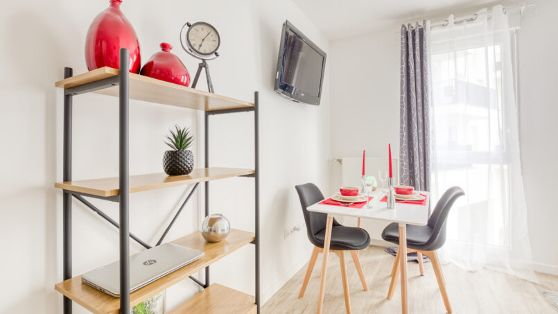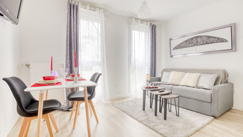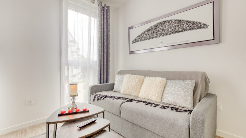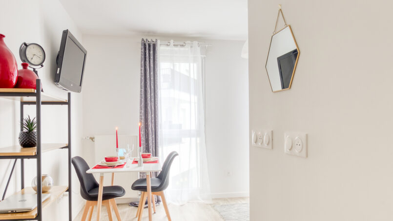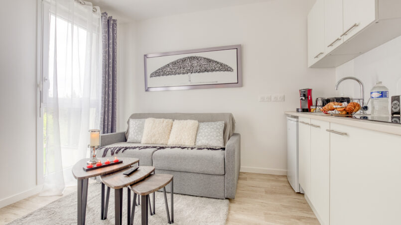 Grand Studio accueillant et pratique décoré avec soin et amour adapté aux personnes à mobilité réduite situé au deuxième étage avec ascenseur dans une résidence neuve et sécurisée.