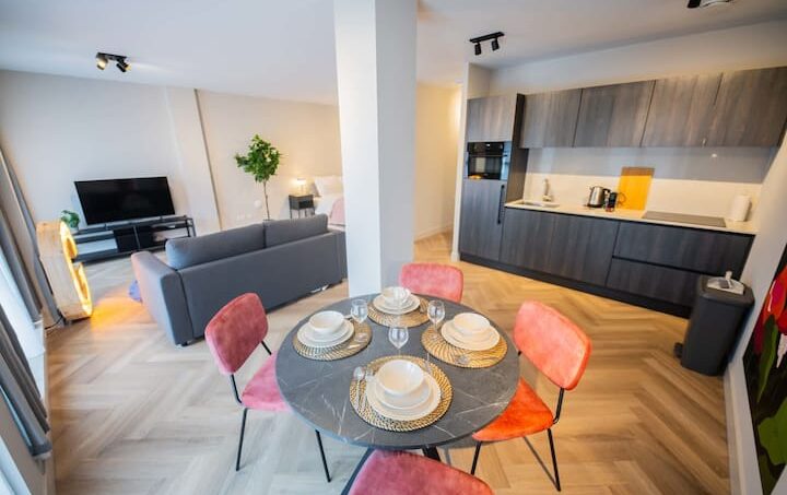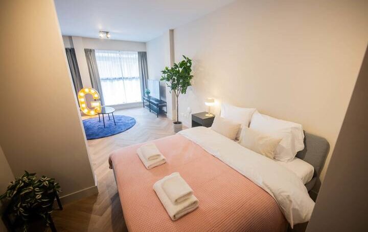These apartments are located in the city center of Hilversum. You will find yourself next to restaurants, supermarkets and cafés. The apartment has all modern features, including smart locks and smart thermostats. That means you can check yourself in and we can give you at all time support.