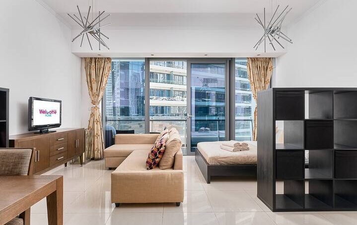 Welcome Home Apartments: studio for 4 guests in Silverene Tower, Dubai Marina, 15 minutes to the beach, 5 minutes to the metro station, supermarkets / restaurants within walking distance.